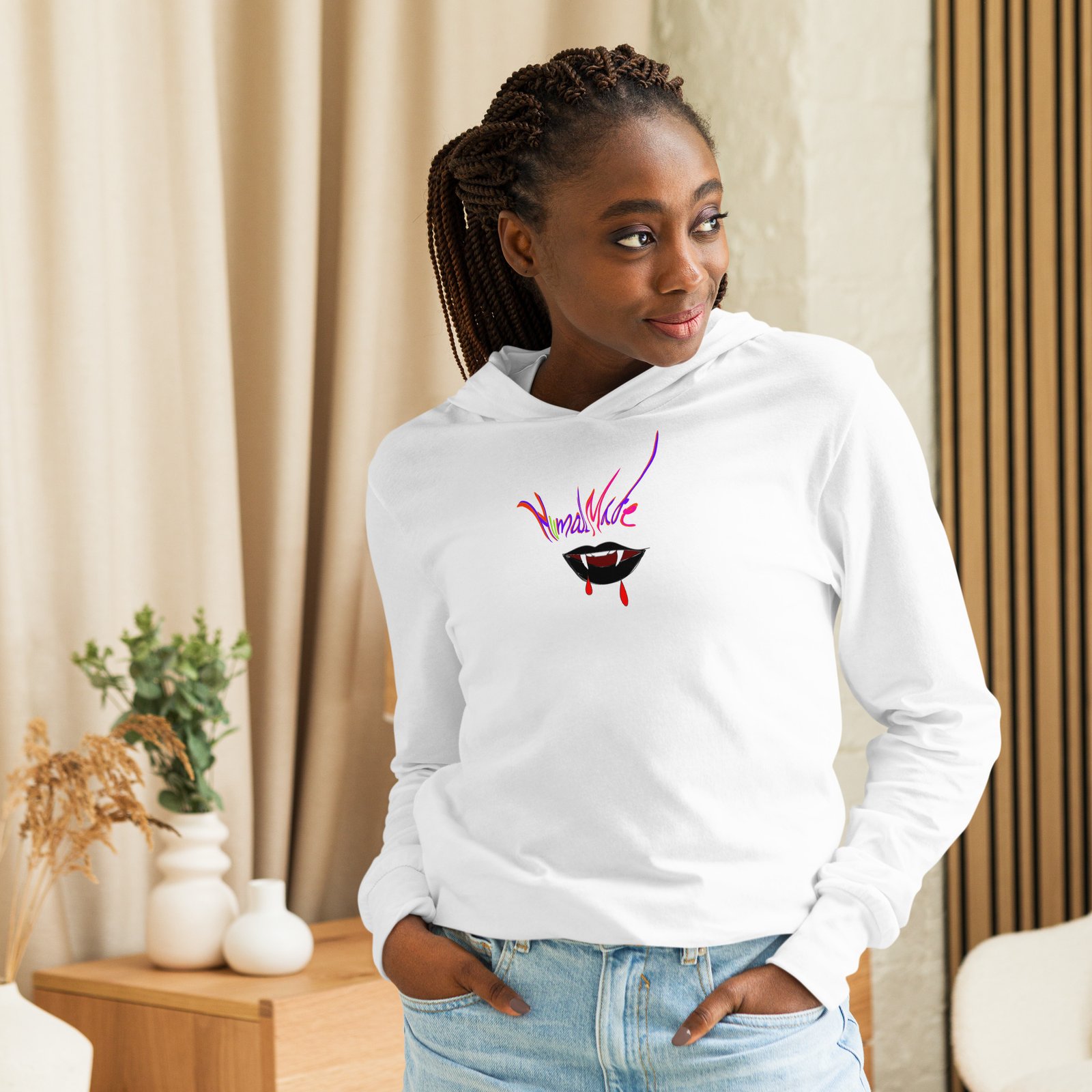 With its long sleeves and comfortable hood, this tee is perfect for layering, allowing you to create stylish outfits all year round. Plus, its lightweight construction allows for unrestricted movement, ensuring that you feel at ease no matter the occasion.
